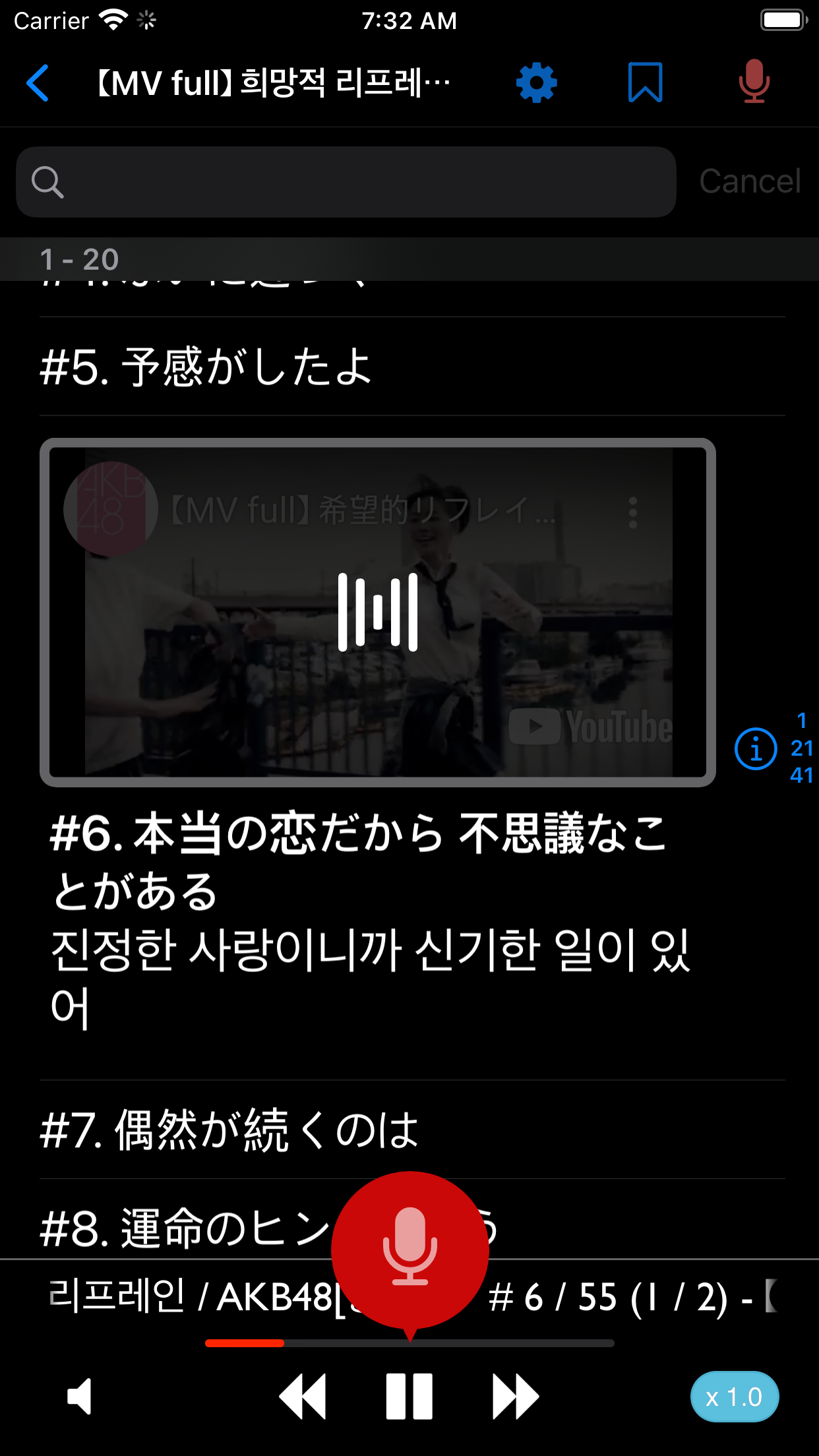 Speaking practice is essential in language learning. Using the “Repeat Player” menu, listen to phrases in videos and practice pronunciation with shadowing techniques. The key to improving speaking skills is practicing as accurately and frequently as possible. You can also check pronunciation accuracy through the speech recognition feature.