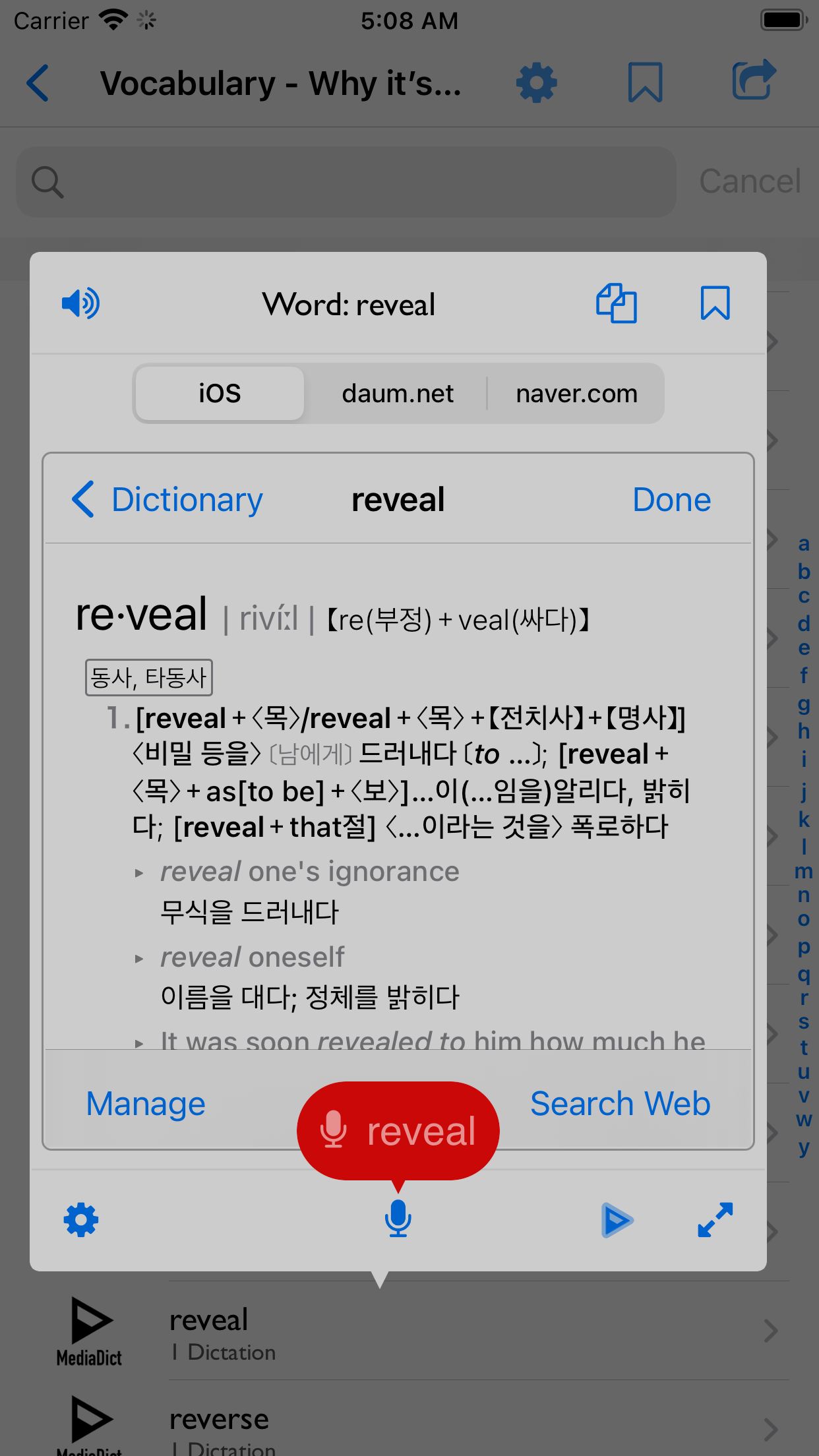 You can list all the words included in the content and easily access their meanings through more than 20 online dictionaries. The platform also provides a speech recognition feature for practicing pronunciation of individual words.